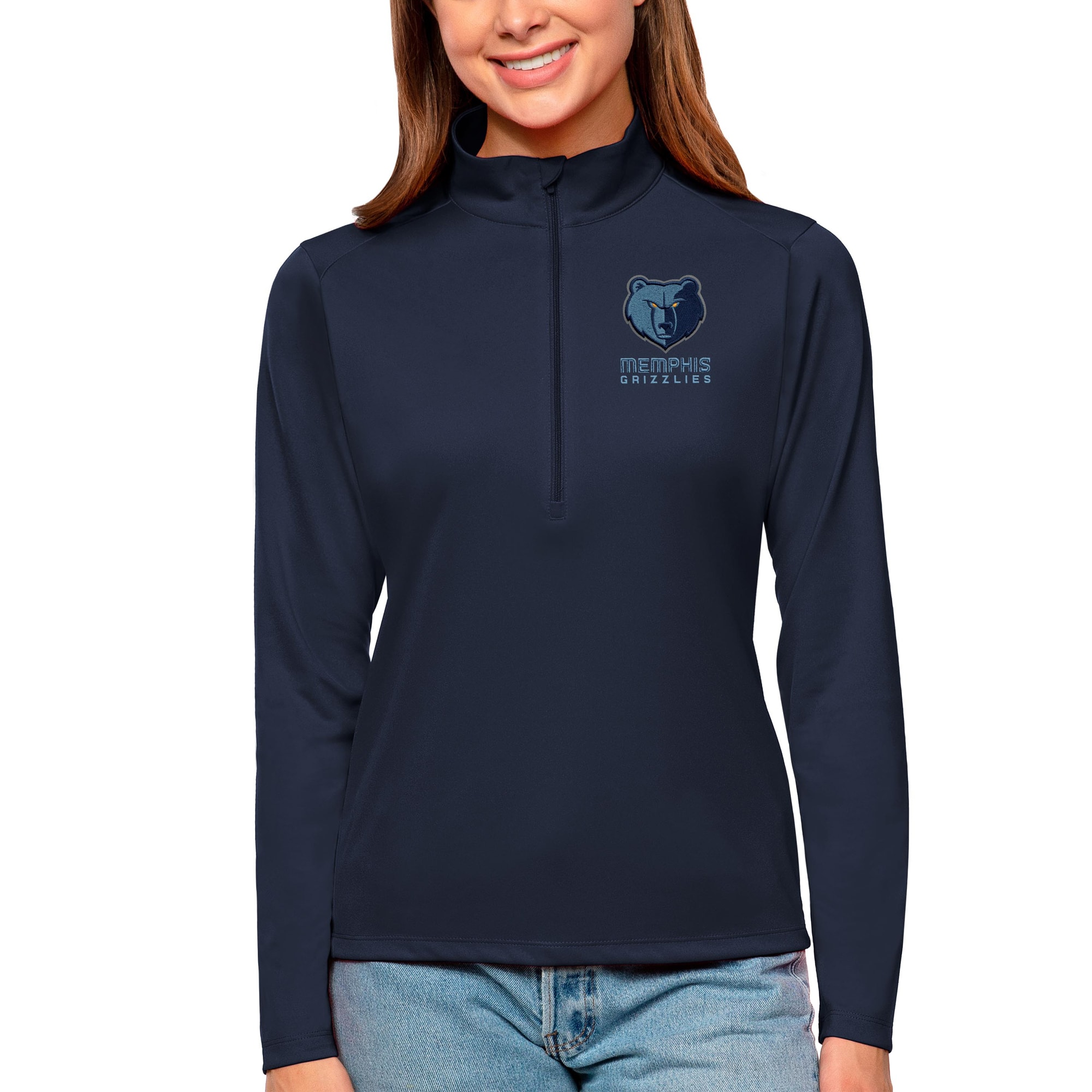 Antigua Memphis Grizzlies Women’s Navy Tribute Half Zip Top Unique